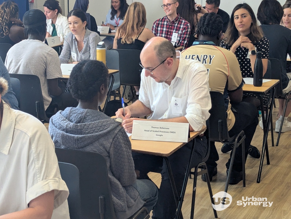 Urban Synergy hosted a Mock Interview and Speed Mentoring programme with volunteers from Google as part of the tech giant's GoogleServe 2025 initiative. 180 students aged 16-17 years at Prendergast School were interviewed and provided with feedback on how they can improve. They also opportunity to speak to wide variety of Google volunteers about their jobs and ask what Google looks for in employees.